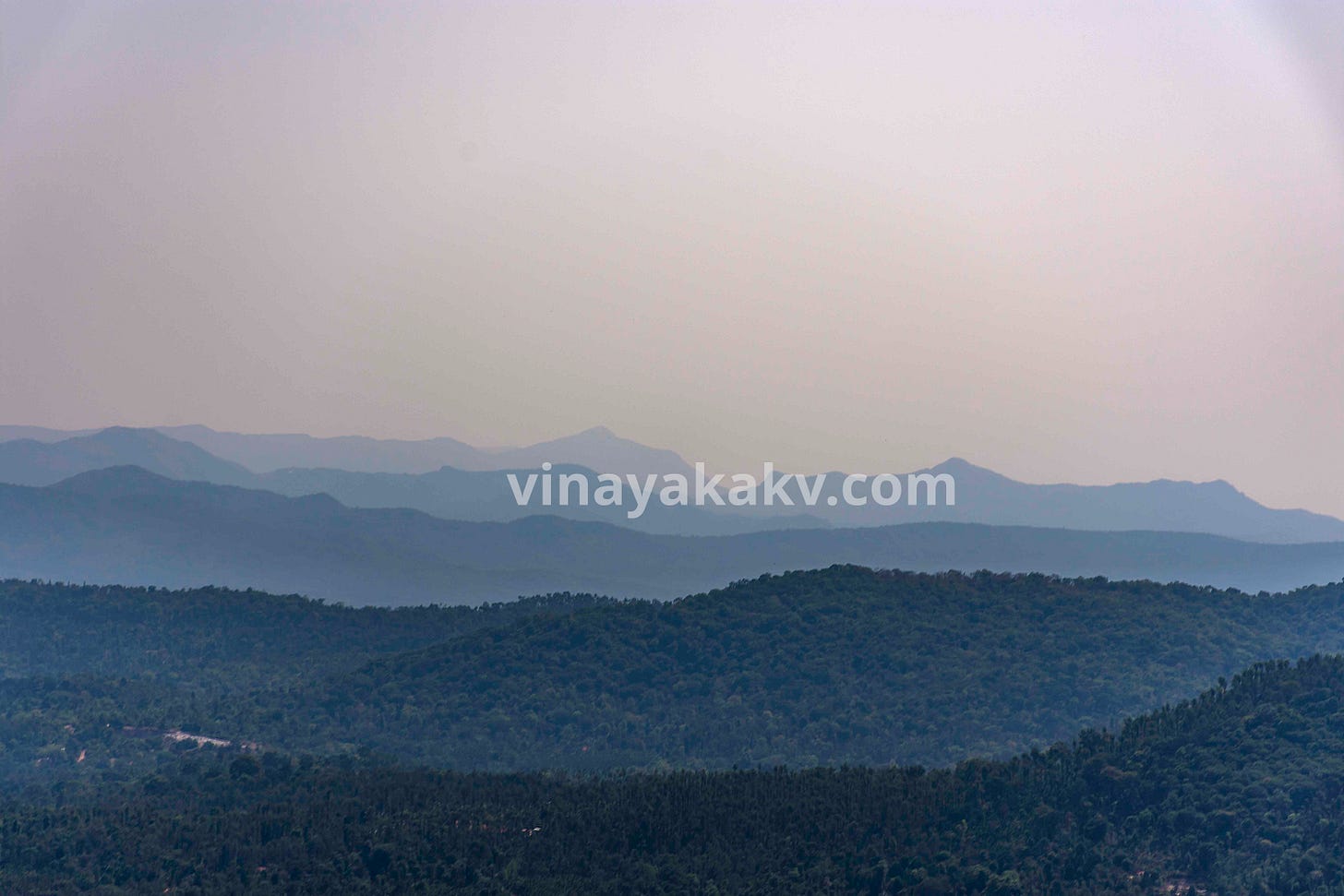 The base of Kumāraparvata or Puṣpagiri(1600m, 5th highest) is visible from the route of Hĕttūru to Māgeri. If weather conditions are clear, it is also visible from Somavārapeṭĕ, the highest point in our journey.
