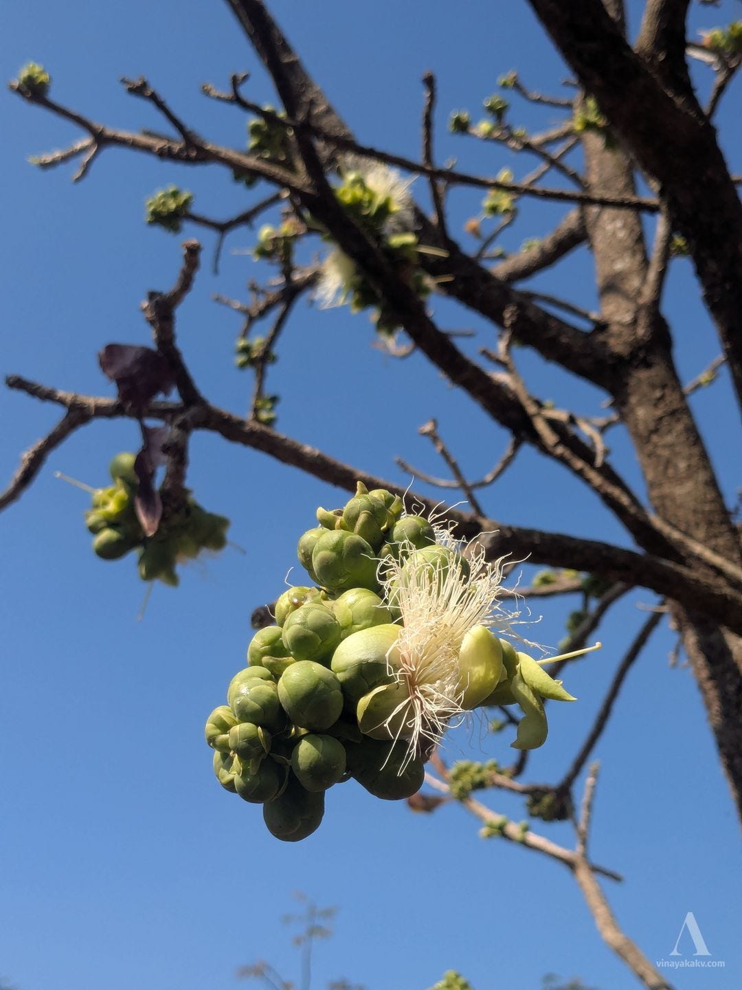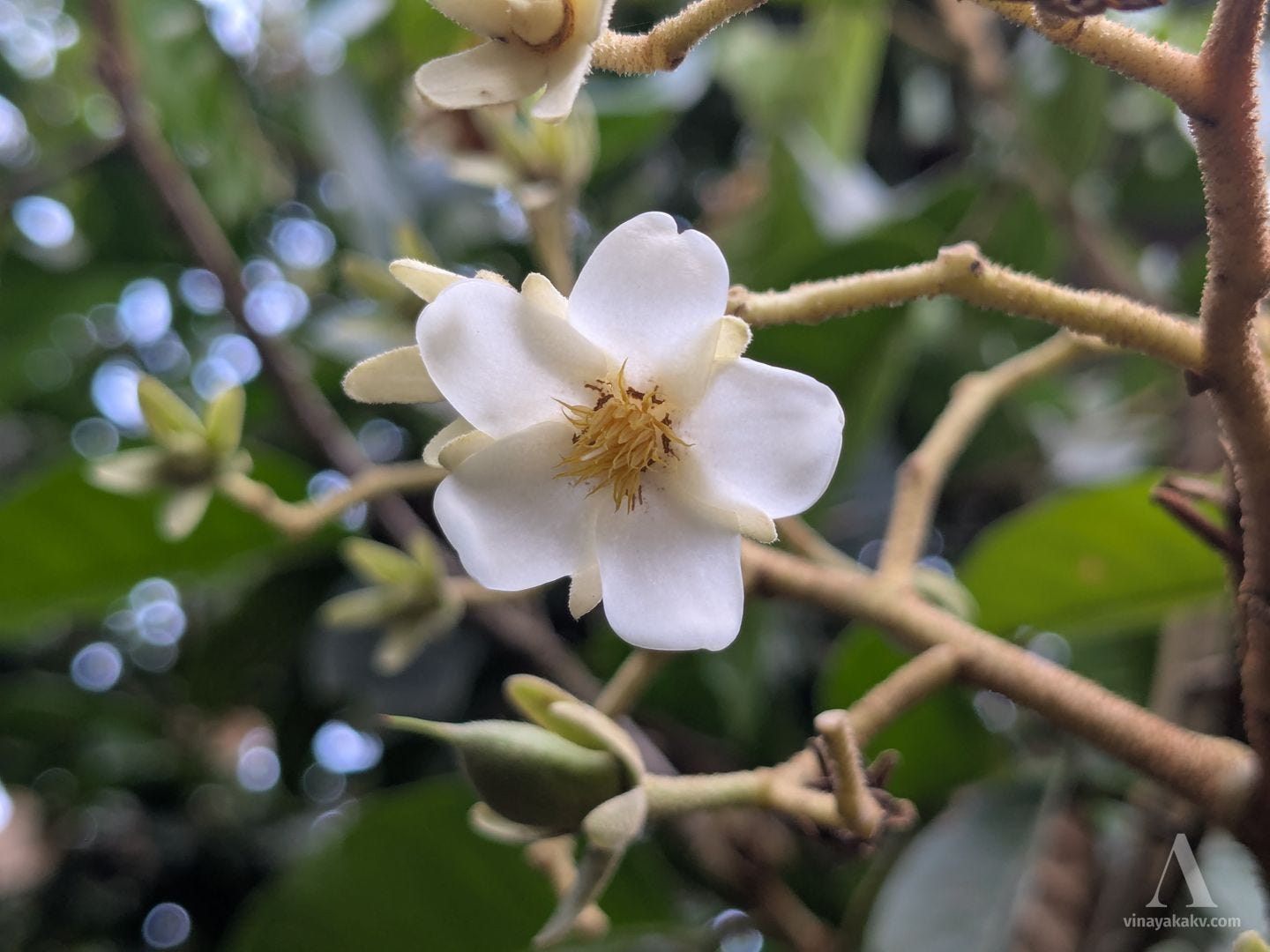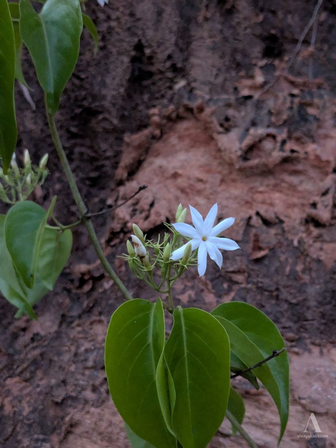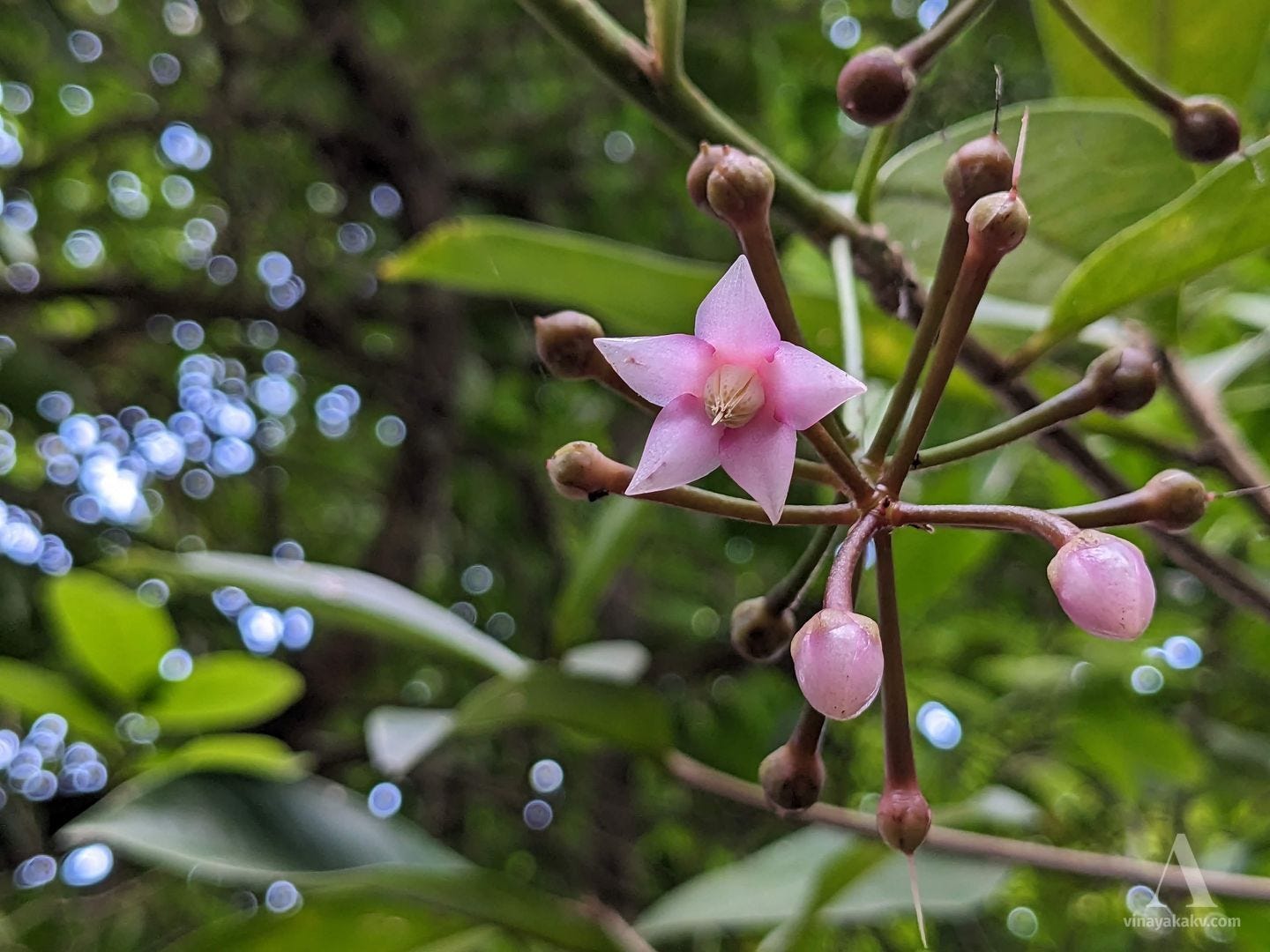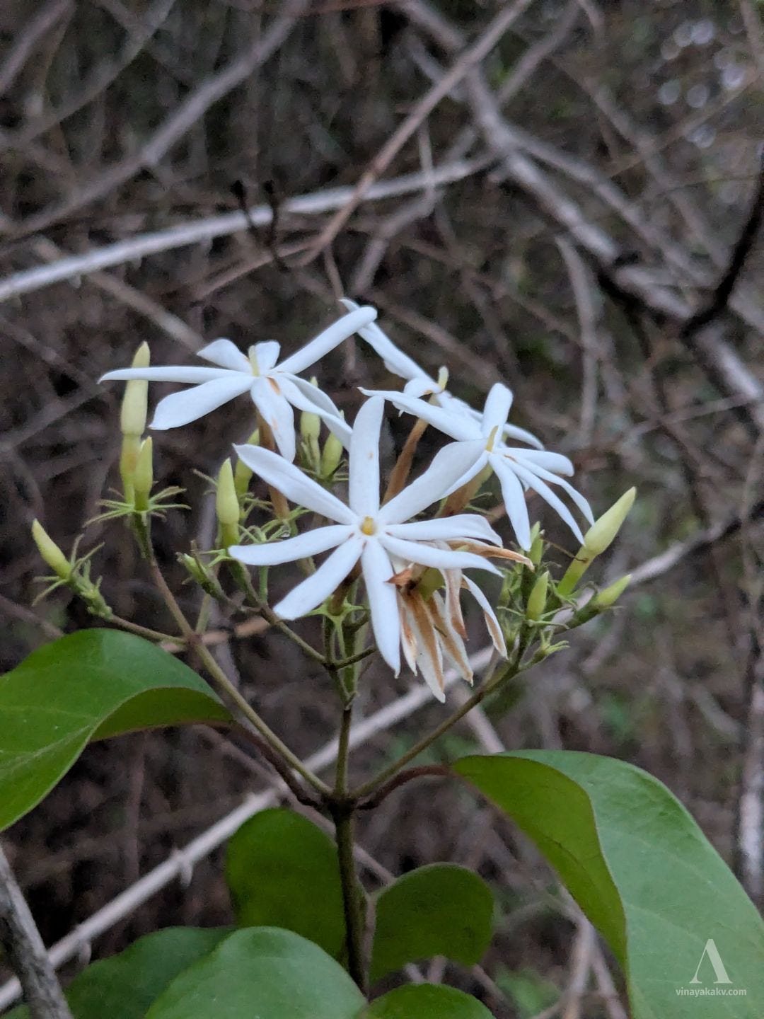 This is one of the flowers that stands out as white dots from the surrounding green foliage. The plant Jasminum malabaricum is blended with the surrounding vegetation otherwise. After the first rains, it rapidly climbs to tree tops and starts flowering. It flowers and fruits till monsoon, after which it dries and disappears until the next summer. Apparently, the fruits are edible as well, though I’ve not tried them yet.
