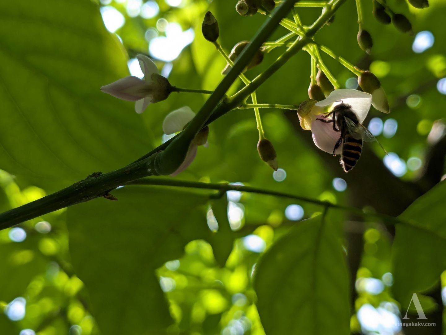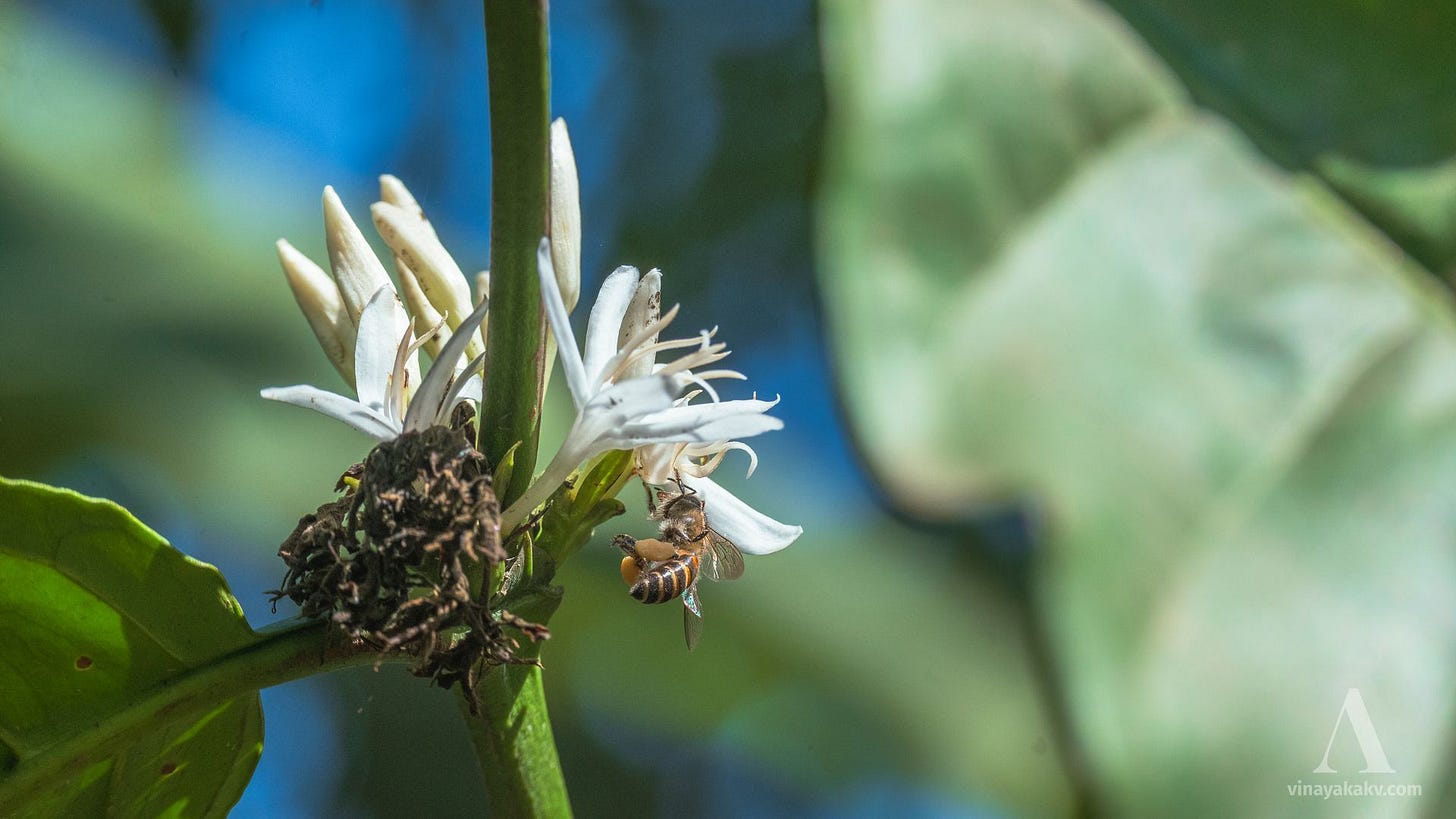 The mass blooming of the coffee plants is a feast for the pollinators, with bees being one of the important pollinators.