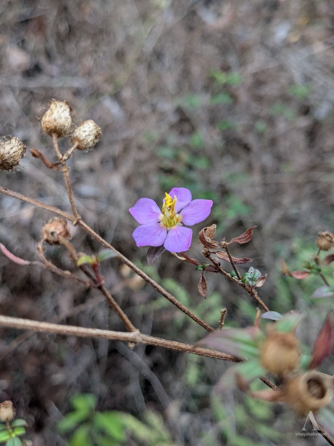 A miniature version of these flowers, of the plant Osbeckia aspera, belonging to the same family is also found during the summer. The plant is not as shrubby as the earlier mentioned Melastoma malabathricum.