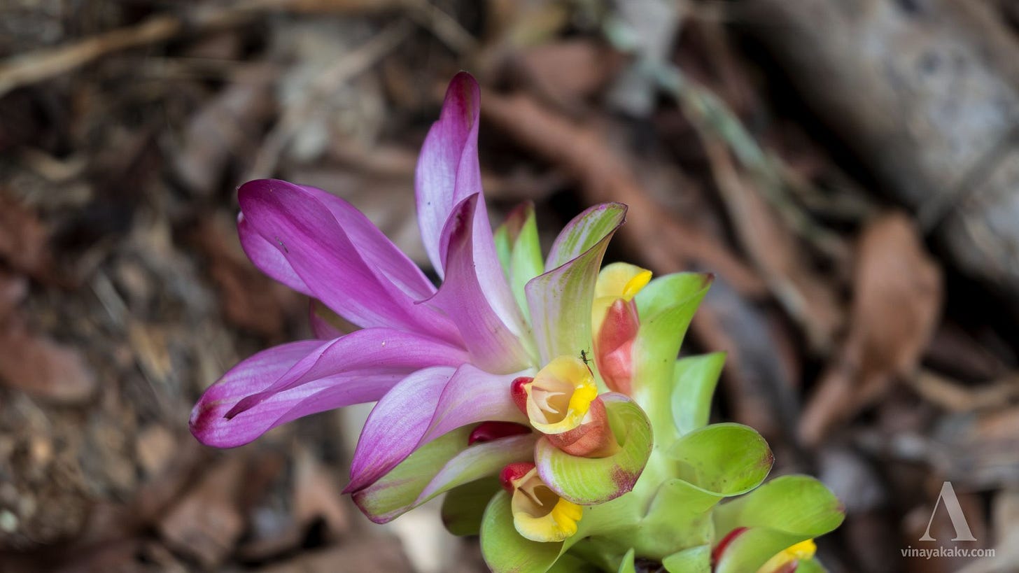 As described in the last article, the trigger for many wild flowers during the summers of the Western Ghats is usually the summer rains. Many rhizomatous plants emerge from the ground, usually accompanied by flowers. Some plants, otherwise blended into the greenery, completely cover themselves with flowers, making them distinguishable. In this article, we shall go through some of the wildflowers, and some backstories associated with them.